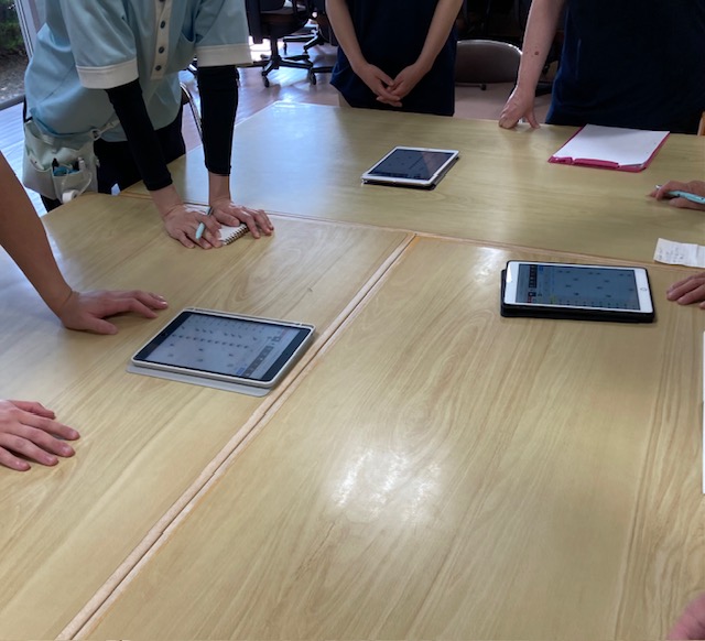 業務の改善や効率化を進めてスタッフの業務軽減を図り、生み出した時間を介護ケアの業務へ充て、介護サービスの質の向上に繋げるために、ICT等のテクノロジーの導入をスタッフが自由で活発な意見を交換し、持続可能な施設を目指すために研修会を開催しております。